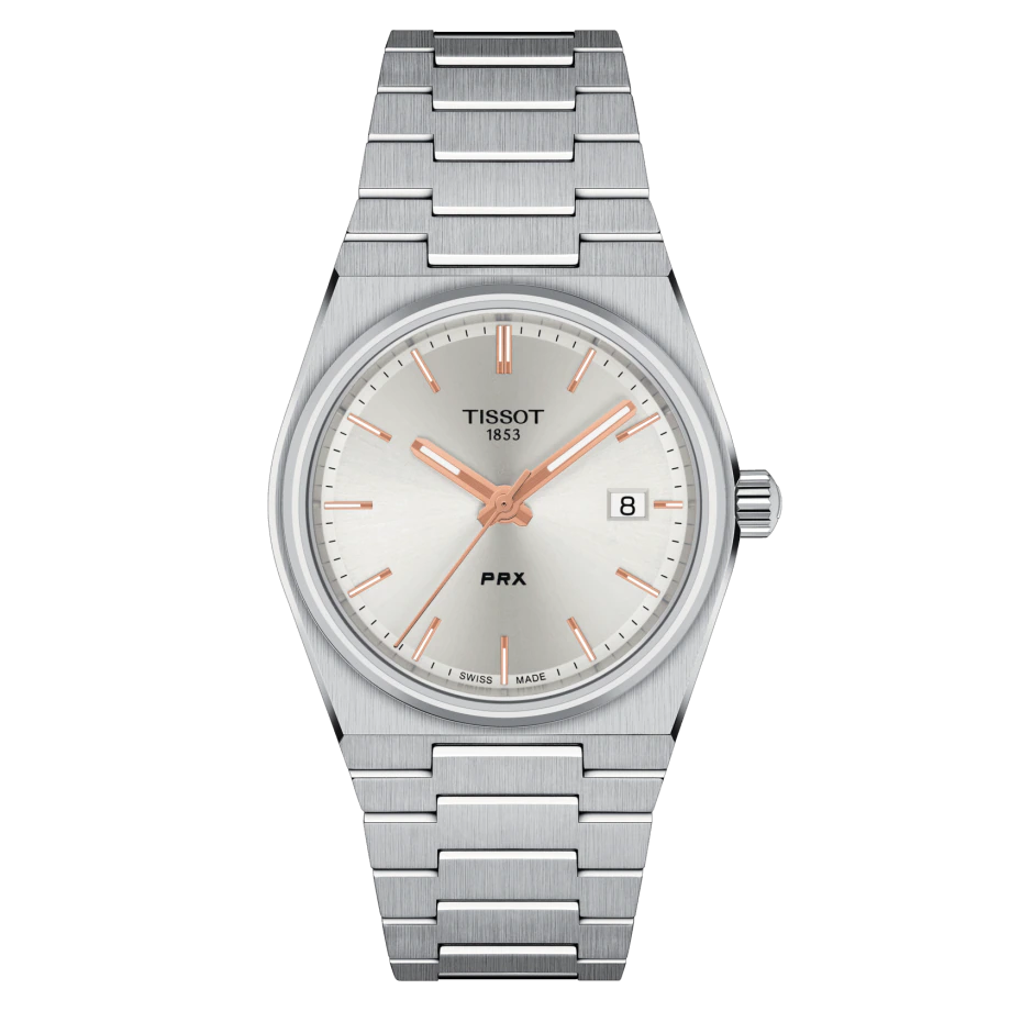 Seria Tissot PRX to nowa edycja kultowego, wyjątkowego modelu z lat siedemdziesiątych ubiegłego wieku. W idealny sposób łączy ducha przeszłości z nowoczesnością. Model oferowany jest w kilkunastu wariantach. Wewnątrz 35 milimetrowej koperty pracuje niezawodny, kwarcowy mechanizm ETA F05.115. Całości dopełnia odporne na zarysowania szkło szafirowe. Czasomierz objęty jest dwuletnią, międzynarodową gwarancją producenta.