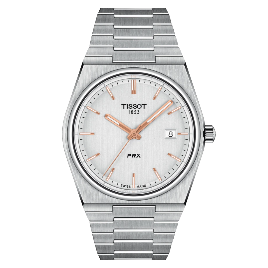 Seria Tissot PRX to nowa edycja kultowego, przepięknego modelu z lat siedemdziesiątych ubiegłego wieku. W idealny sposób łączy ducha przeszłości z nowoczesnością. Model oferowany jest w trzech wersjach kolorystycznych na pięknej stalowej bransolecie. Wewnątrz 40 mm koperty pracuje niezawodny, kwarcowy mechanizm ETA F06.115 całości dopełnia odporne na zarysowania szkło szafirowe. Czasomierz objęty jest dwuletnią, międzynarodową gwarancją producenta.