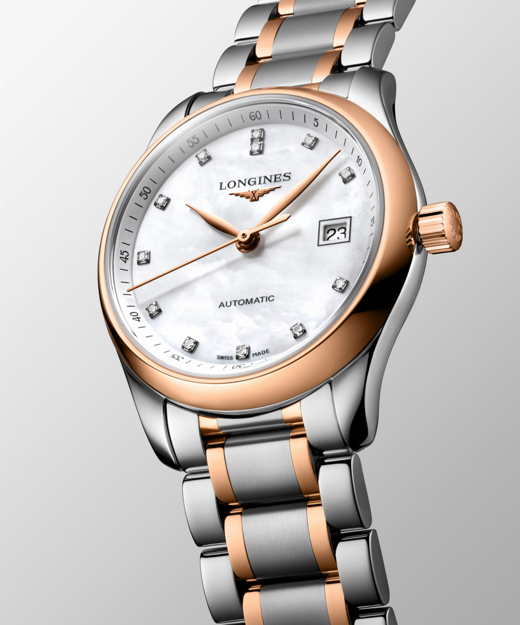 Firma Longines wprowadziła na rynek linię Master Collection w 2005 roku z ogromnym sukcesem. Zegarki łączą w sobie klasyczny, elegancki wygląd i niepowtarzalny styl. Niewątpliwie, to wspaniała propozycja dla osób ceniących sobie tradycje zegarmistrzowskie, nowoczesność na wysokim światowym poziomie. Wewnątrz koperty pracuje mechanizm automatyczny cal. L592, którego rezerwa chodu, przy pełnym nakręceniu sprężyny wynosi około 45 godzin. Wyjątkowo okazale prezentuje się tarcza czasomierza, którą pokrywa masa perłowa. Znaczniki godzin na tarczy ozdobiono brylantami. Całości dopełnia elegancka bransoleta. Linia czasomierzy Master Collection objęta jest pięcioletnią, międzynarodową gwarancją producenta.