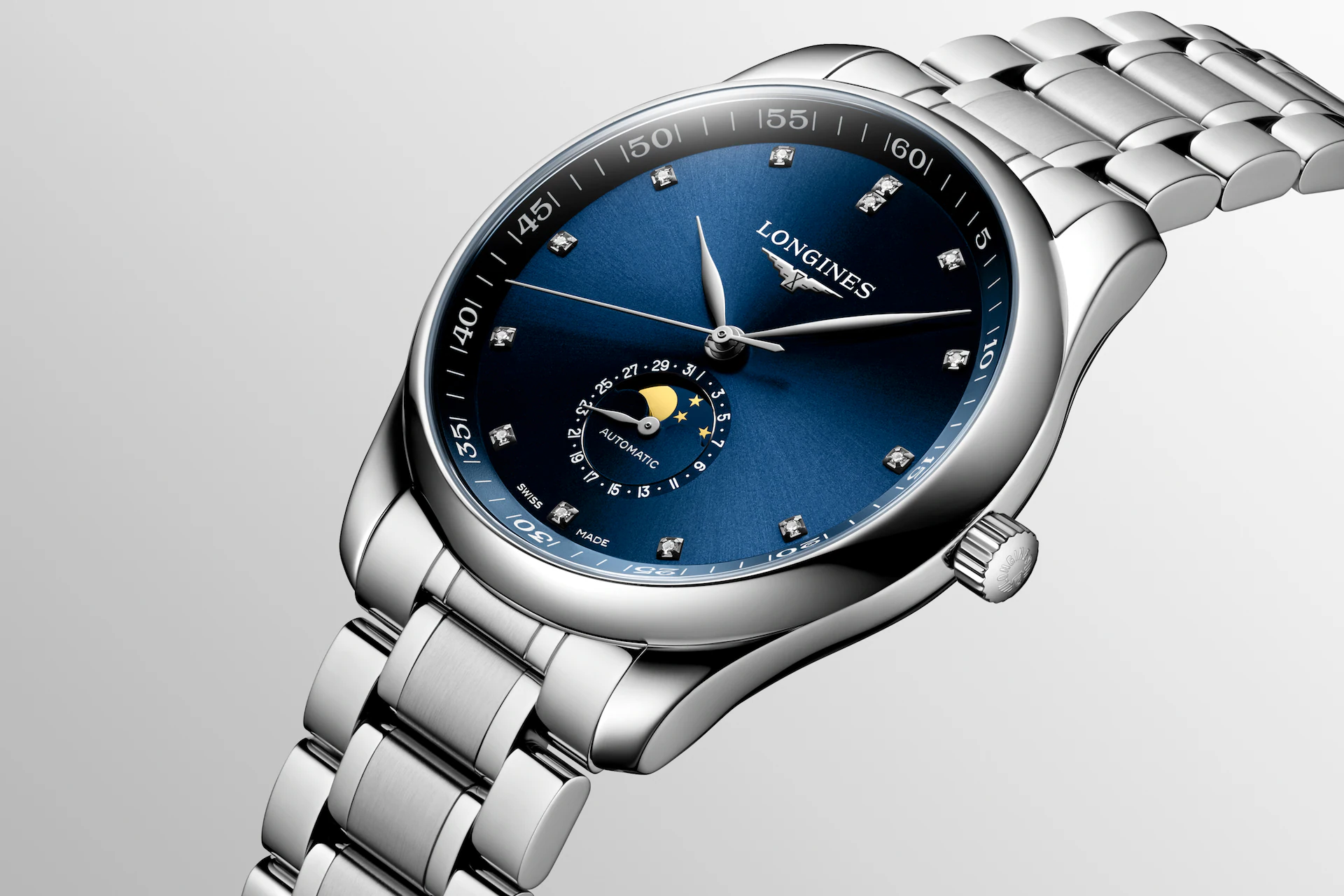 Firma Longines wprowadziła na rynek linię Master Collection w 2005 roku z ogromnym sukcesem. Zegarki łączą w sobie klasyczny, elegancki wygląd i niepowtarzalny styl. Niewątpliwie, to wspaniała propozycja dla osób ceniących sobie tradycje zegarmistrzowskie, nowoczesność na wysokim światowym poziomie. Wewnątrz koperty pracuje mechanizm automatyczny Calibre L899 rezerwą chodu wynoszącą około 72 godziny. Wyjątkowo okazale prezentuje się gliszowana tarcza czasomierza. Znaczniki godzin na tarczy ozdobiono brylantami. Całości dopełniają fazy księżyca wraz z kalendarzem na godzinie szóstej oraz pasek wykonany ze skóry aligatora. Linia czasomierzy Master Collection objęta jest pięcioletnią, międzynarodową gwarancją producenta.