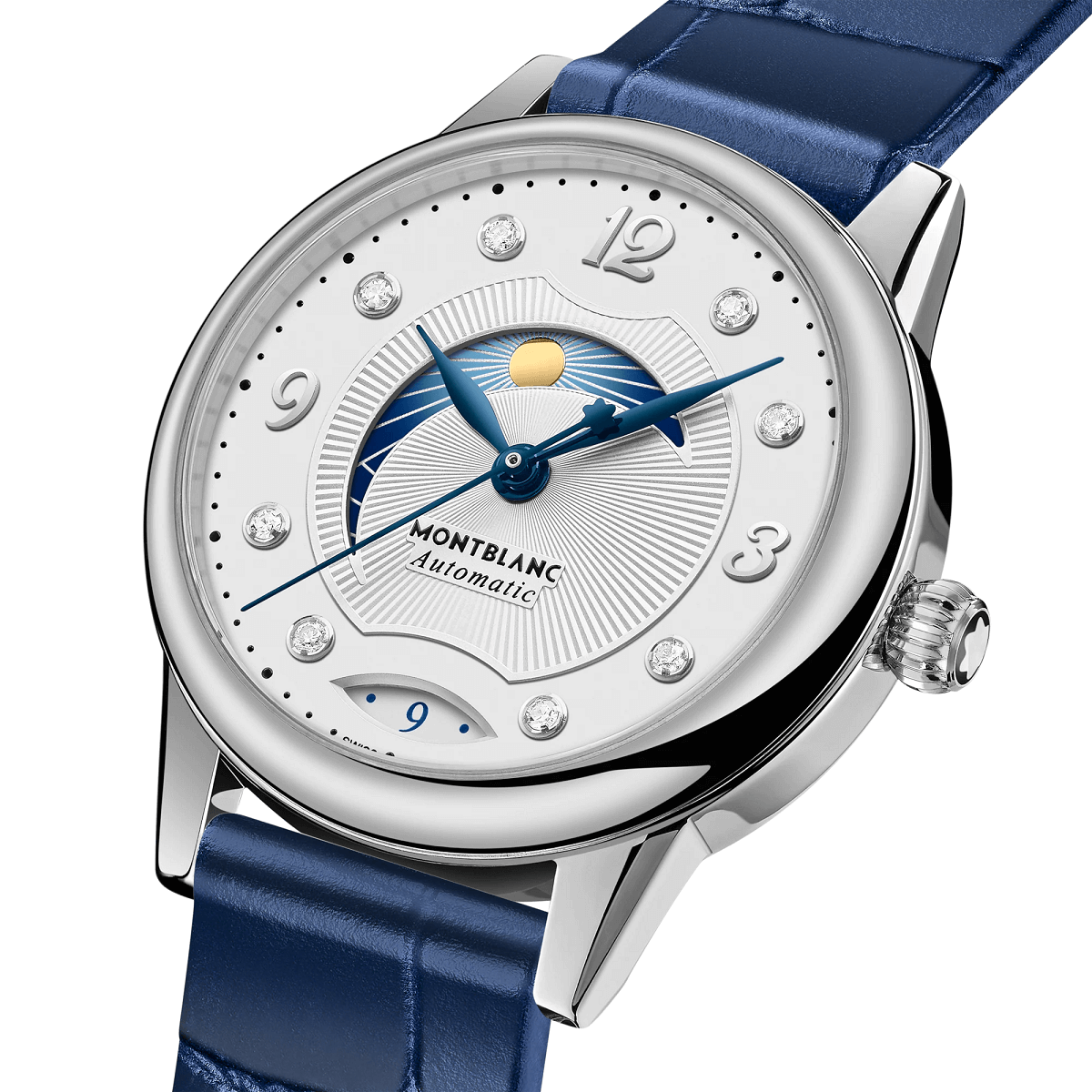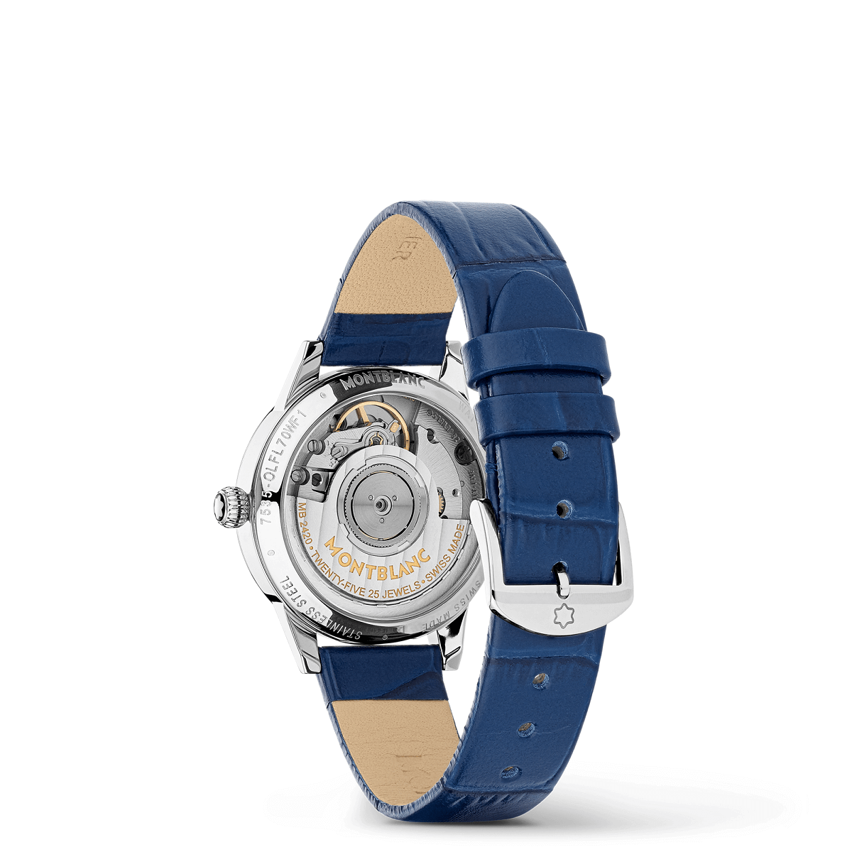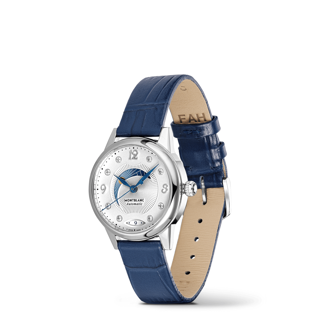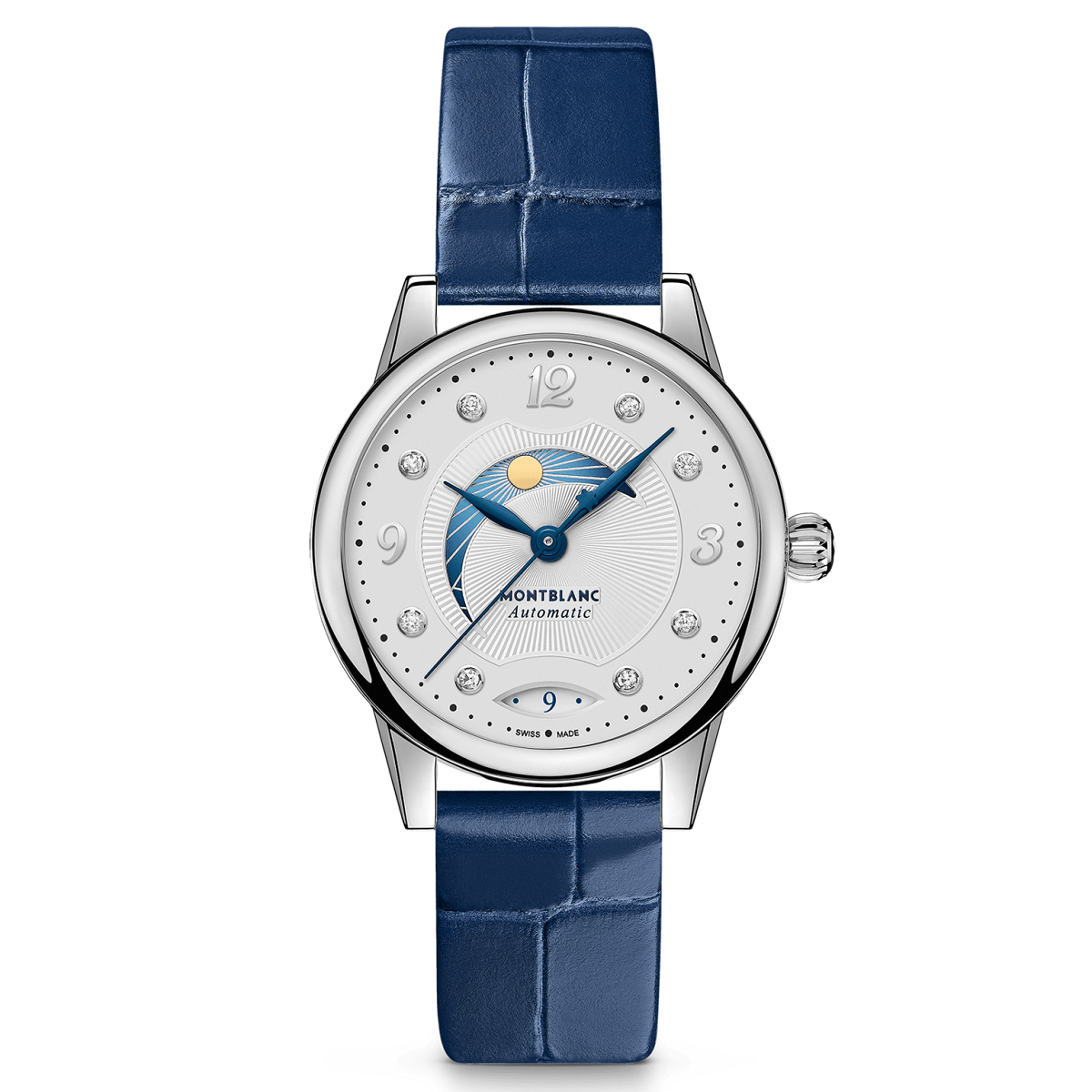 Kolekcja zegarków Montblanc Boheme to coś więcej niż niepowtarzalny styl. To sposób myślenia. Najważniejsze w niej jest celebracja pewnej siebie, niezależnej kobiety dla której nie ma ograniczeń i sięga gwiazd. Montblanc Boheme Day&Night jest dla niej idealną inspiracją, a oryginalna estetyka obejmuje Słońce i Księżyc które całują się raz dziennie o północy oraz chmury z masy perłowej w kształcie serc. Dopełnieniem jest 8 diamentowych indeksów dodające marzycielskiego piękna tarcza z cyframi arabskimi pokrytymi różowym złotem. Zegarki Boheme zostały zaprojektowane tak, aby uczynić każdą stylizację olśniewającą, a osobę ją nosząca otoczyć blaskiem niczym z prawdziwego Słońca i Księżyca. Dzięki temu, że kolekcja Boheme występuje w różnych wariantach rozmiarowych jak i w zestawieniu zarówno ze skórzanymi paskami jak i bransoletami niezależnie od stylu każdy może znaleźć model dla siebie i zachwycać innych. Czasomierz objęty jest dwuletnią, międzynarodową gwarancją producenta.